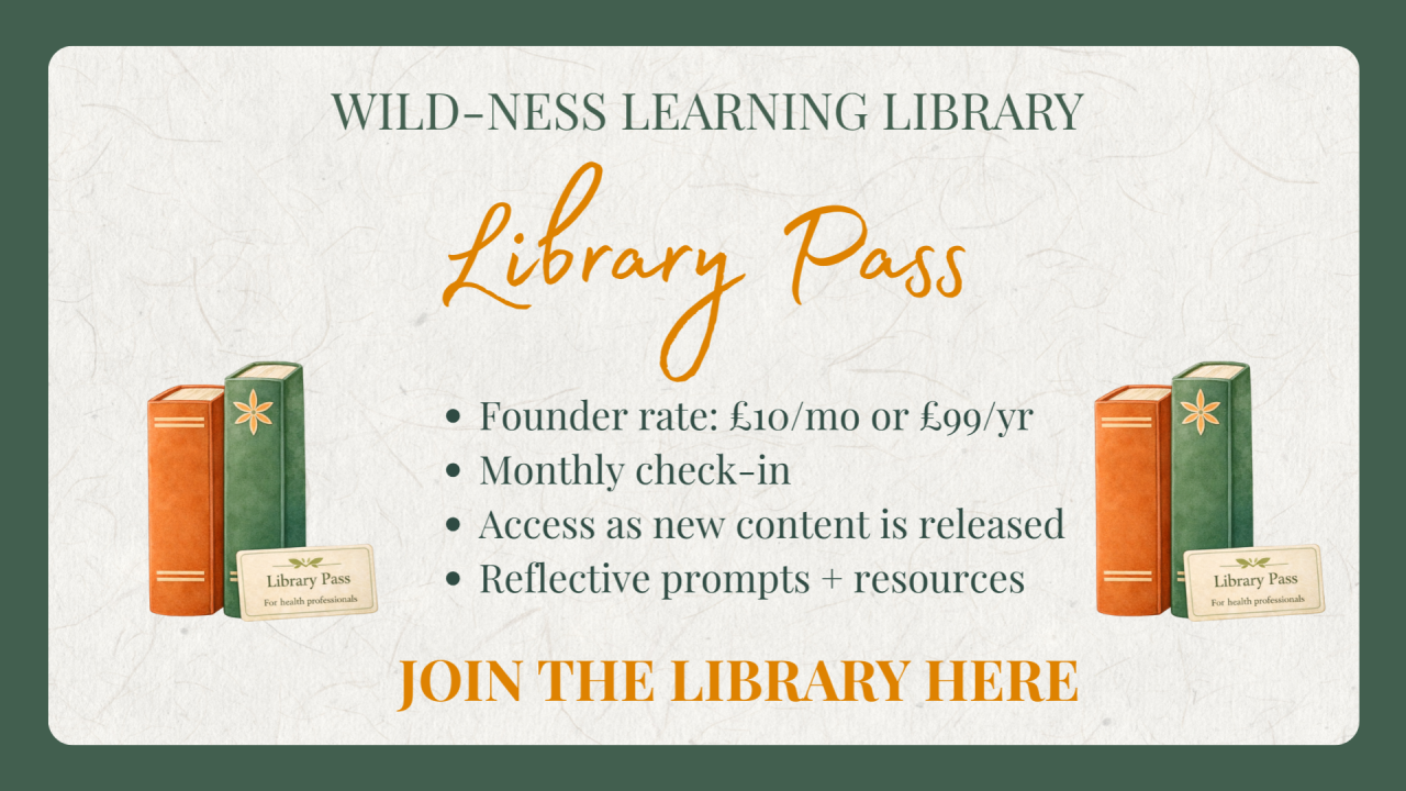 The Four Seasons of Learning brings together almost three years of learning from Wild-Ness Health — clinical practice, creative work, research, and community collaboration — and translates it into a flexible, engaging, year-long online programme for health professionals.